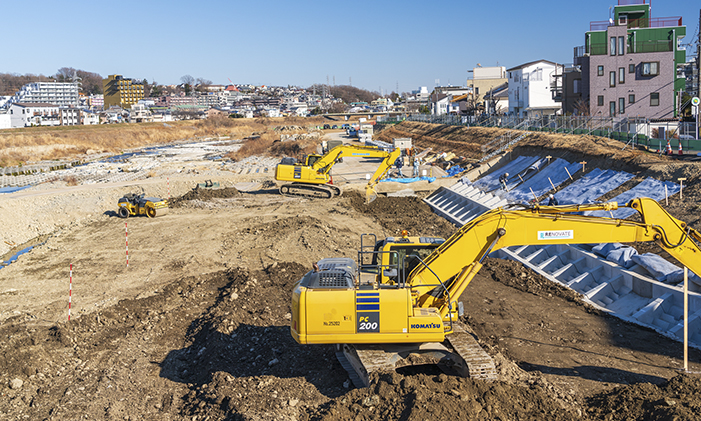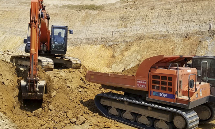 重機土工事業ではスーパーゼネコン、大手ゼネコンの1次協力会社として東京都を中心に関東エリアで、土木工事の掘削・埋戻工事、残土・産業廃棄物運搬工事を行っています。