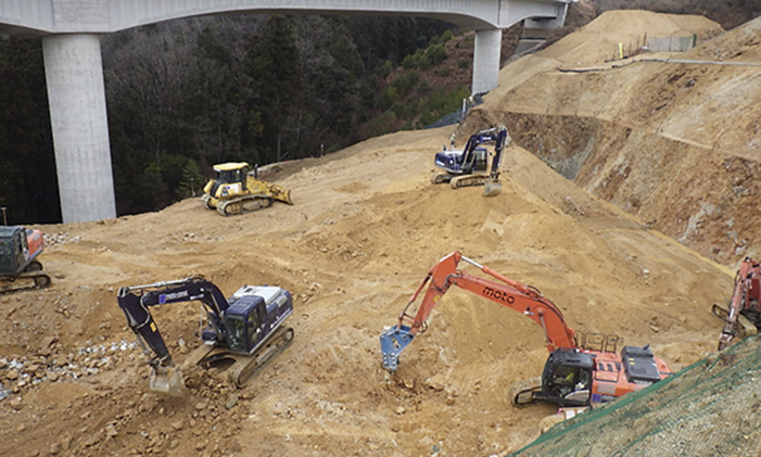 重機土工事業ではスーパーゼネコン、大手ゼネコンの1次協力会社として東京都を中心に関東エリアで、土木工事の掘削・埋戻工事、残土・産業廃棄物運搬工事を行っています。